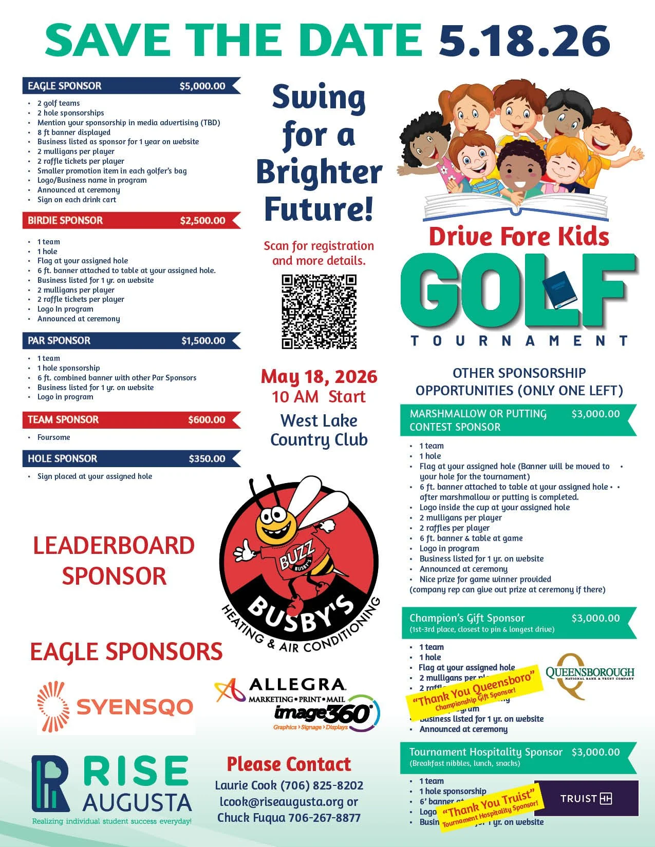 The countdown is on for RISE Augusta’s Annual Golf FORE Kids Tournament — happening May 18, 2026 — and thanks to some incredible community partners, we’re already off to a strong start!